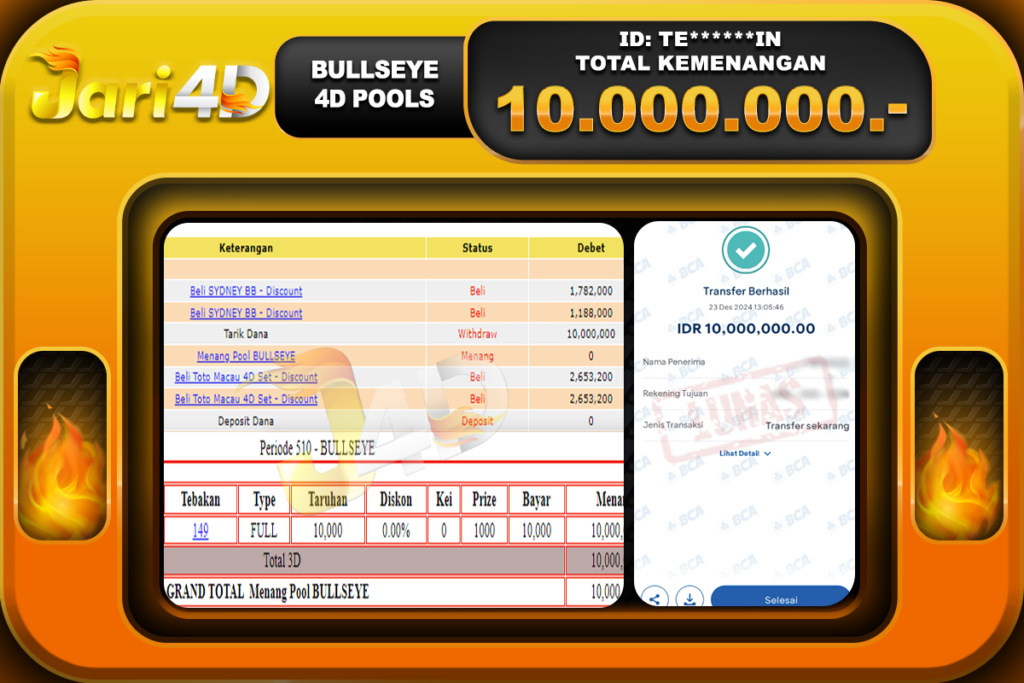 Bukti JP SYDNEY Hari ini Di Situs JARI4D Sebesar Rp.5.000.000,- Tuntas !! Read More »