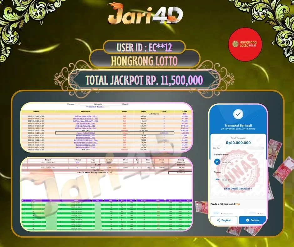 Bukti JP HONGKONG LOTTO Hari ini Di Situs JARI4D Sebesar Rp.11,500,000,- Tuntas !!