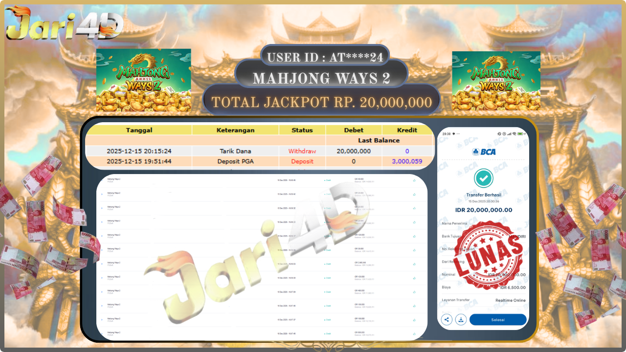 Bukti JP MAHJONG WAYS 2 Hari ini Di Situs JARI4D Sebesar Rp.20,000,000,- Tuntas !!