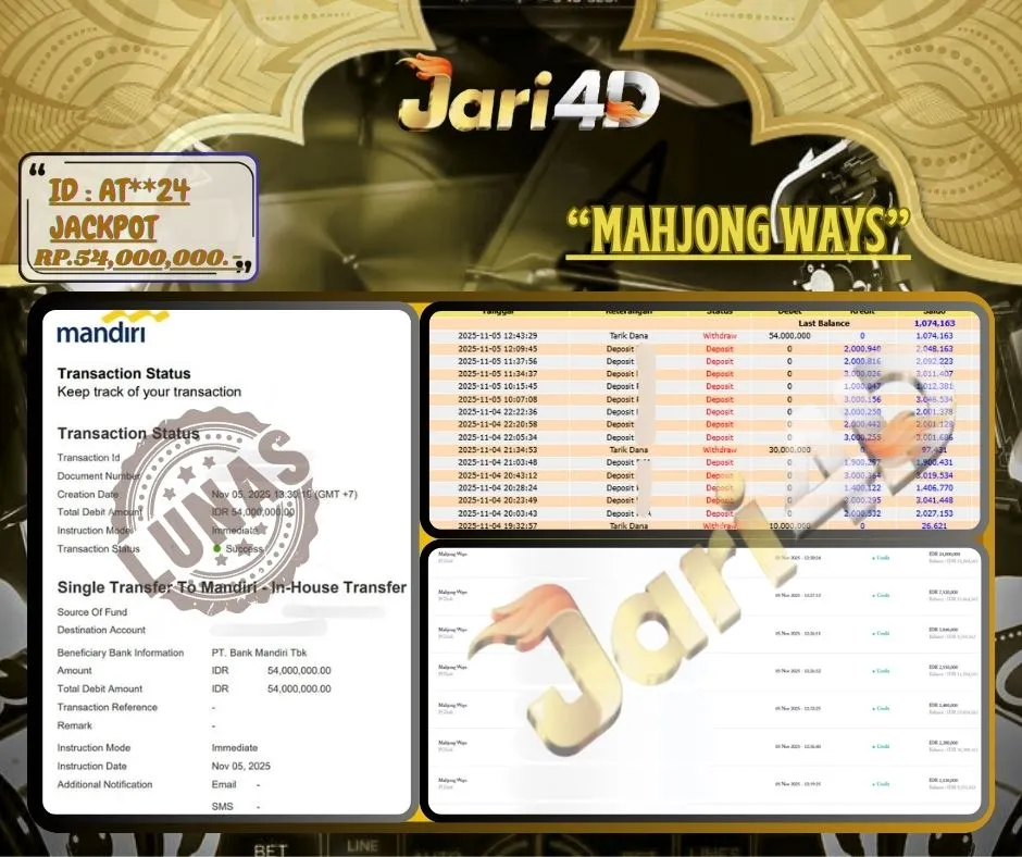 Bukti JP MAHJONG WAYS Hari ini Di Situs JARI4D Sebesar Rp.54,000,000,- Tuntas !!