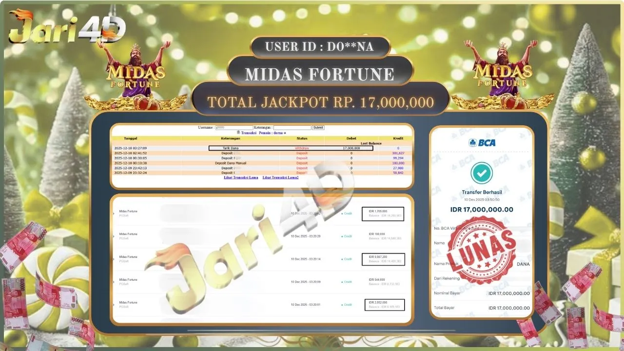 Bukti JP MIDAS FORTUNE Hari ini Di Situs JARI4D Sebesar Rp.17,000,000,- Tuntas !!