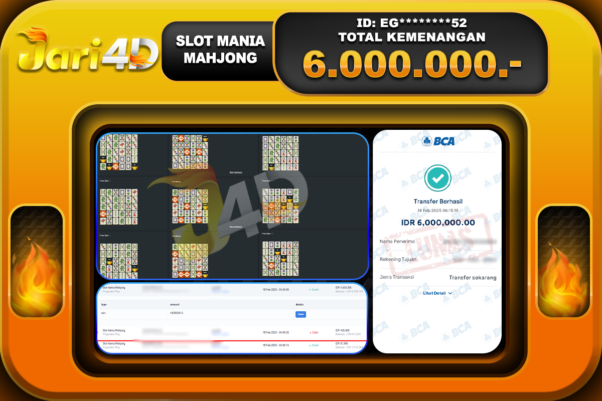 Bukti JP SLOT MANIA MAHJONG Hari ini Di Situs JARI4D Sebesar Rp.6.000.000,- Tuntas !!