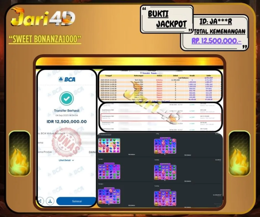 Bukti JP SWEET BONANZA 1000” Hari ini Di Situs JARI4D Sebesar Rp.12,500,000,- Tuntas !!