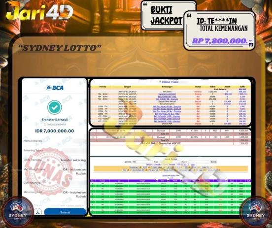Bukti JP SYDNEY LOTTO Hari ini Di Situs JARI4D Sebesar Rp.7,800,000,- Tuntas !!