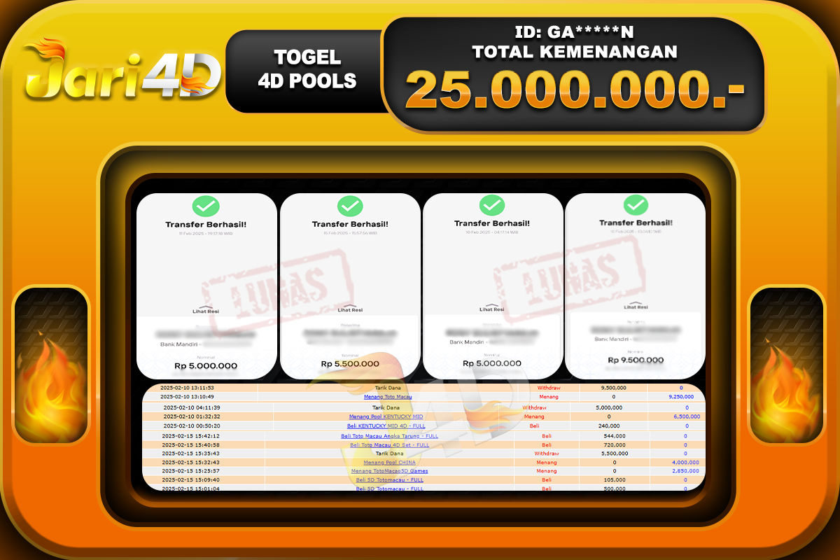 Bukti JP TOGEL 4D POOLS Hari ini Di Situs JARI4D Sebesar Rp.25.000.000,- Tuntas !!