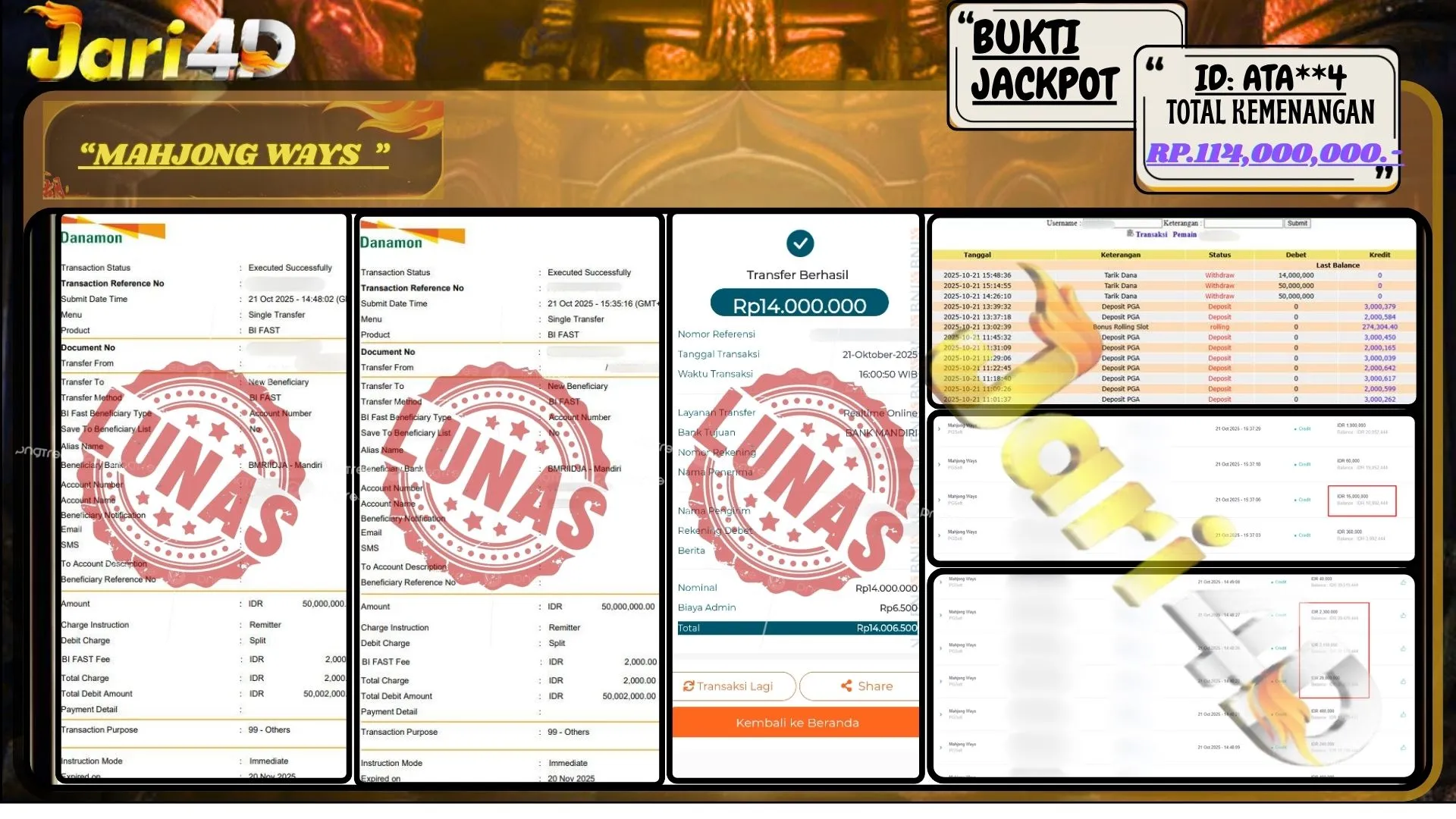 Bukti MAHJONG WAYS Hari ini Di Situs JARI4D Sebesar Rp.114,000,000,- Tuntas !!